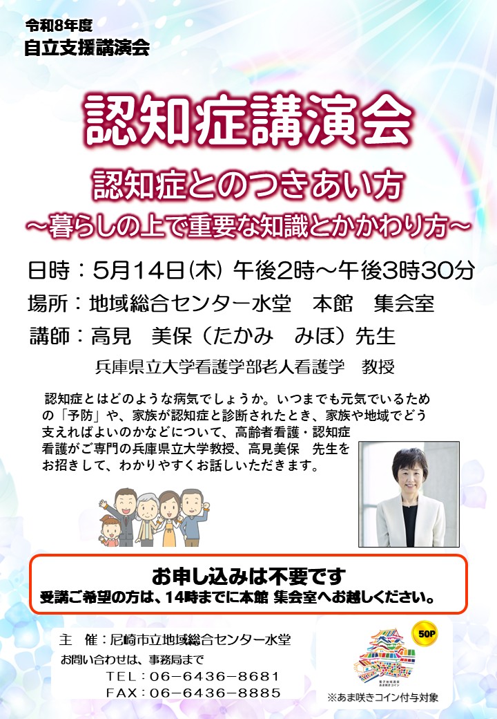 認知症とはどのような病気かをご存じでしょうか。本講演会では、認知症の基礎知識をはじめ、いつまでも元気に過ごすための予防方法や、ご家族が認知症と診断された際にどのように支えればよいかについて、わかりやすくお話しいただきます。