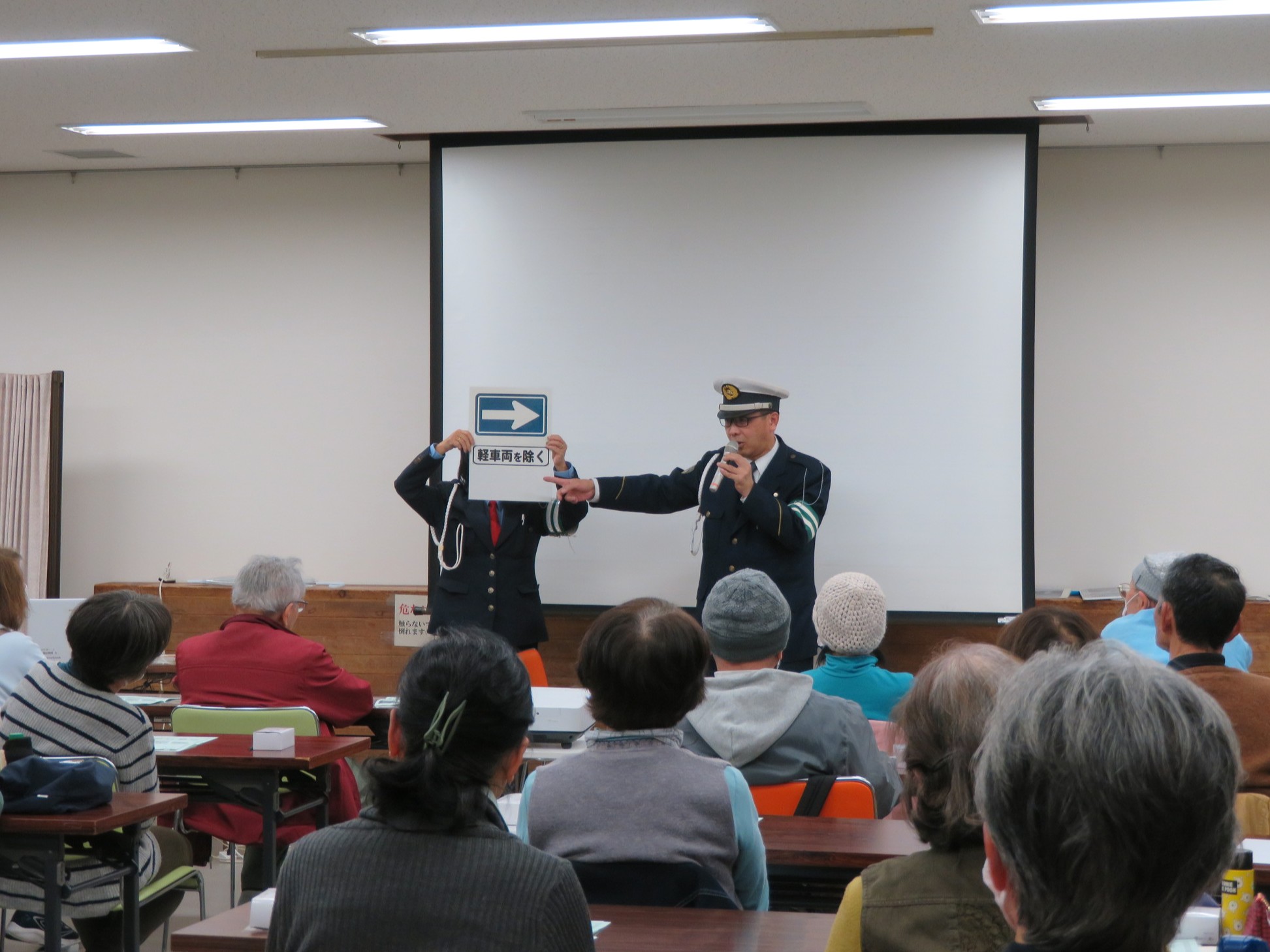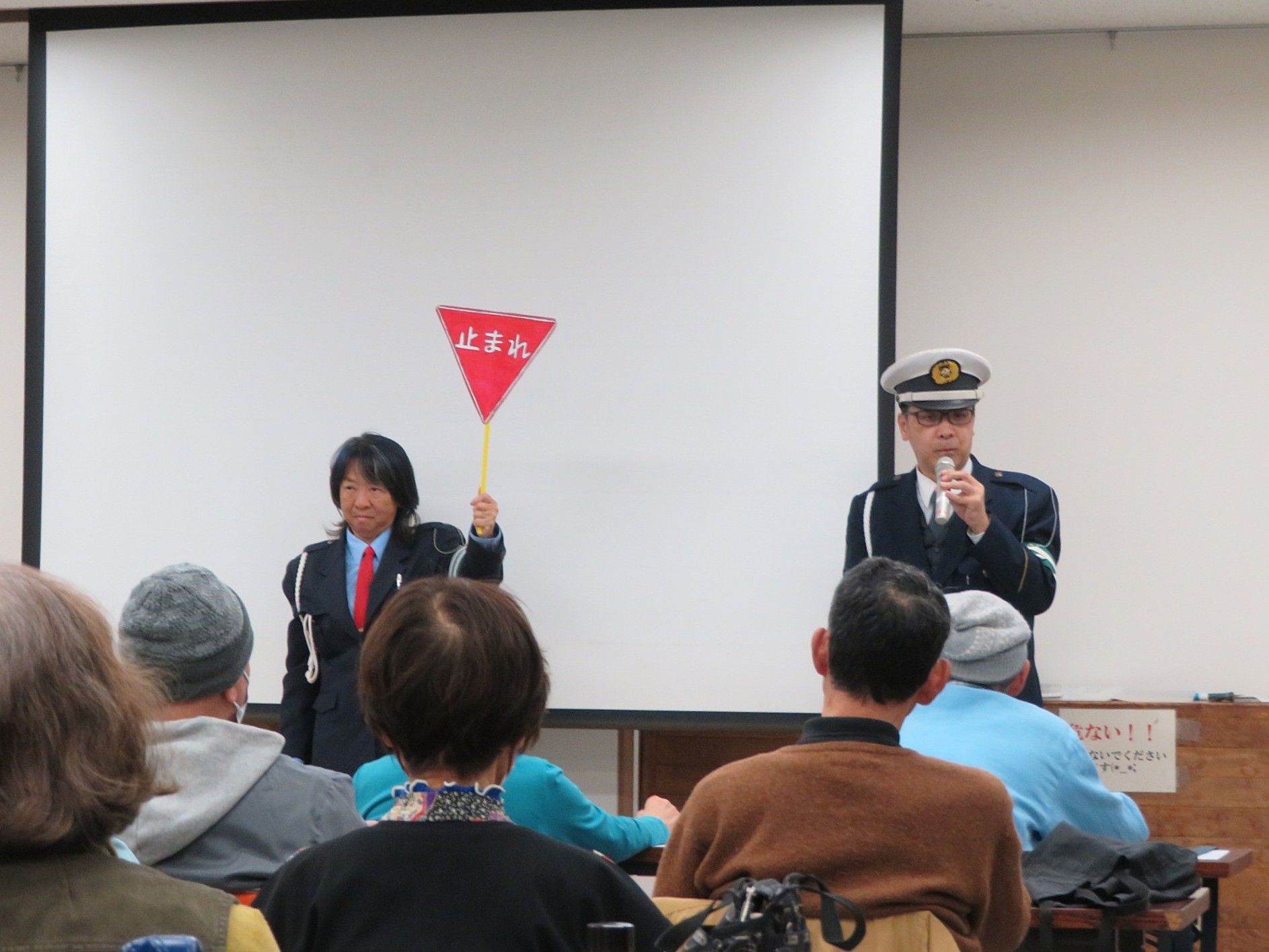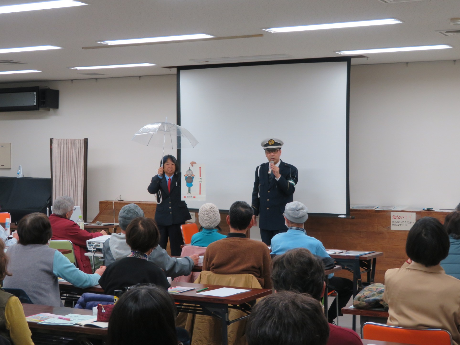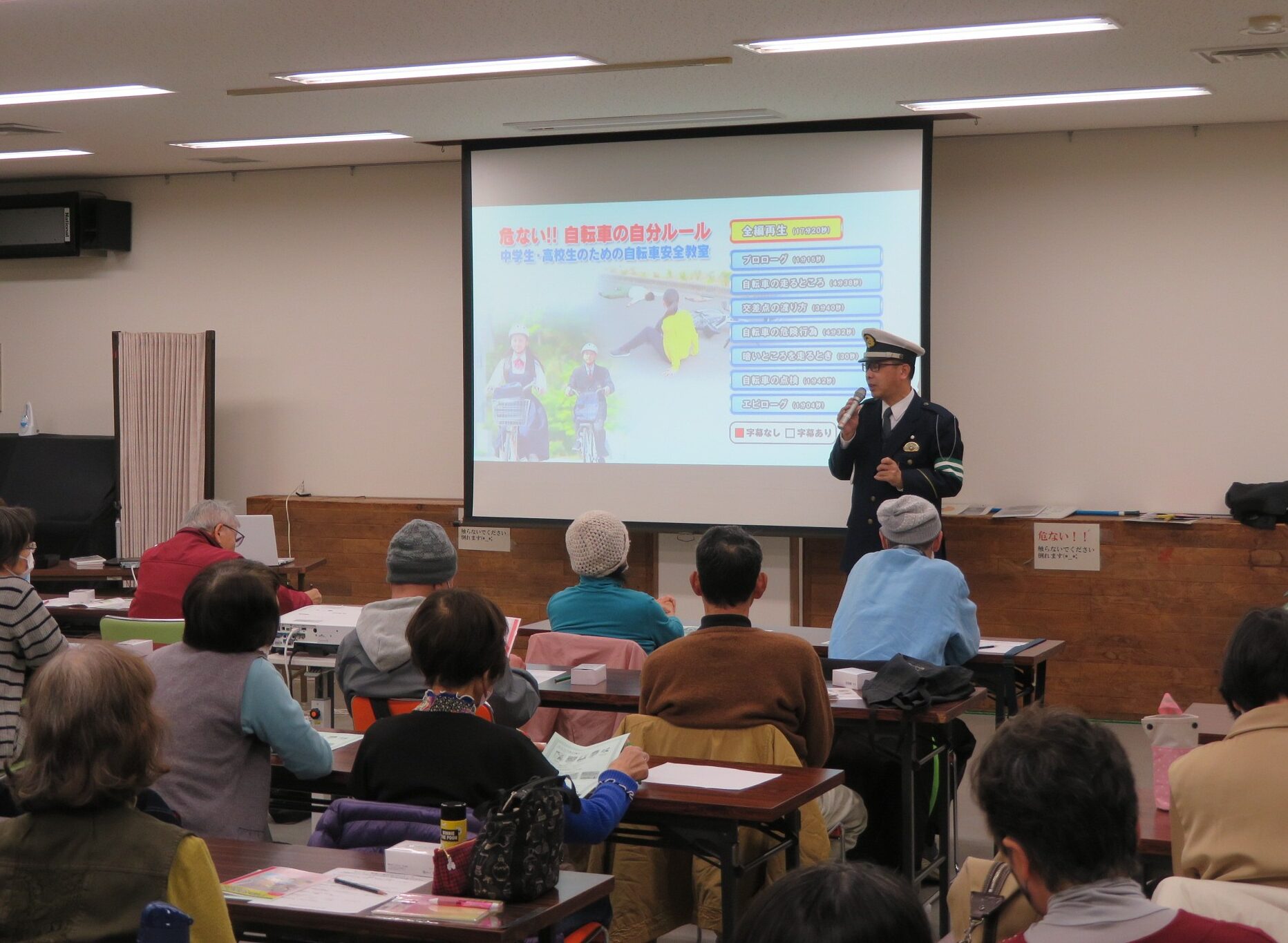 また、DVDの鑑賞やクイズを通して、楽しく交通ルールを学ぶことができました。参加された皆さんも、話を聞いたりクイズに答えたりしながら、積極的に参加されていました。